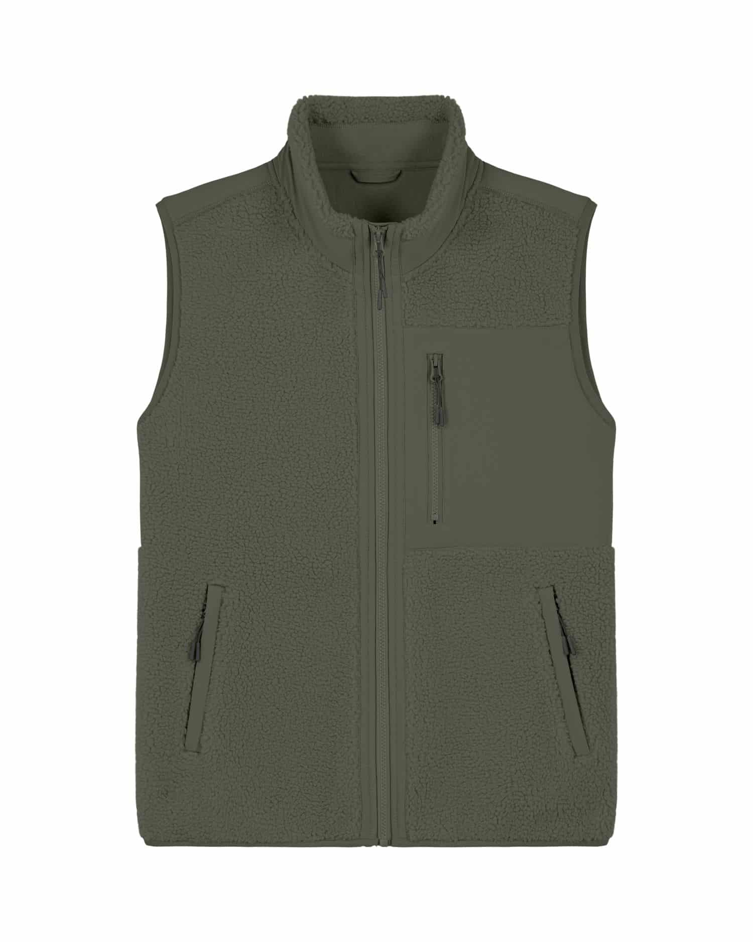 Contrast softshell stof bij zak, achter schouderstuk en buitenste kraagband